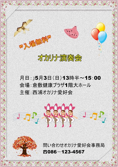 | Picosmou Toolsを使ってチラシを作成! 3月にIT-ふたば会の講座に参加して、このソフトは始めて使いました 背景画像とイラストの一部はネットからお借りしました 右の小さい画像をクリックすると大きい画像で、ごらんいただけます |
